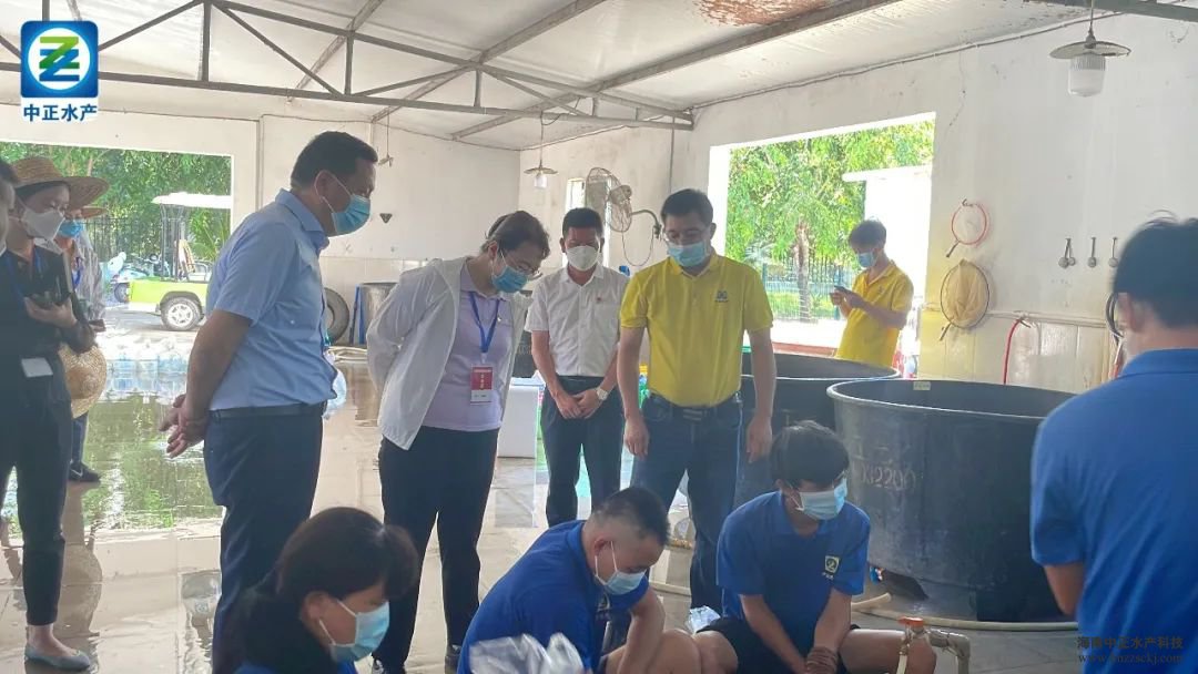 要防控疫情,也要安全生產。在中正水產總裁雷秋涼和副總裁王平的帶領下,調研團隊實地考察了育苗部、海水魚苗部、育種中心等主要生產部門。